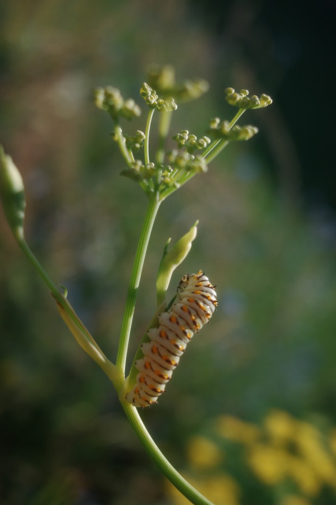 Caterpillars arrived as if to test that arrangement. At first my hand hovered between instinct and principle. I chose principle. They ate and grew huge and handsome. Then they vanished. A butterfly appeared, then another; then more caterpillars returned. By the time the second wave had finished, I was carrying peppers and cucumbers by the basketful, proof that abundance can arrive out of what looked like chaos.